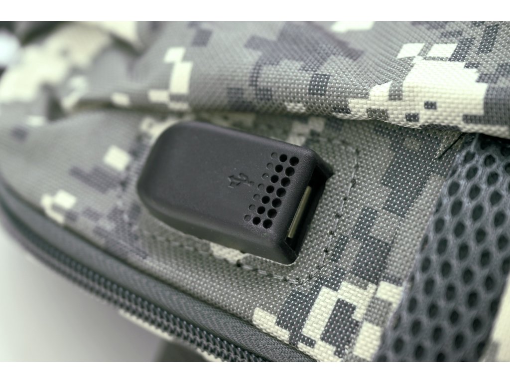Na boční straně je integrován USB konektor, který umožňuje pohodlné propojení zařízení uvnitř batohu pomocí USB kabelu.