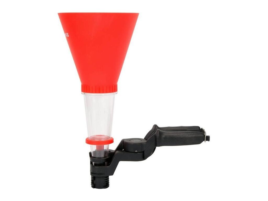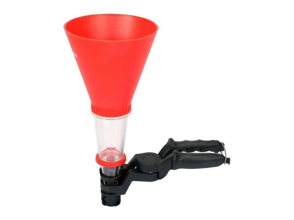Praktická nálevka s držadlem a nastavitelnou svorkou.