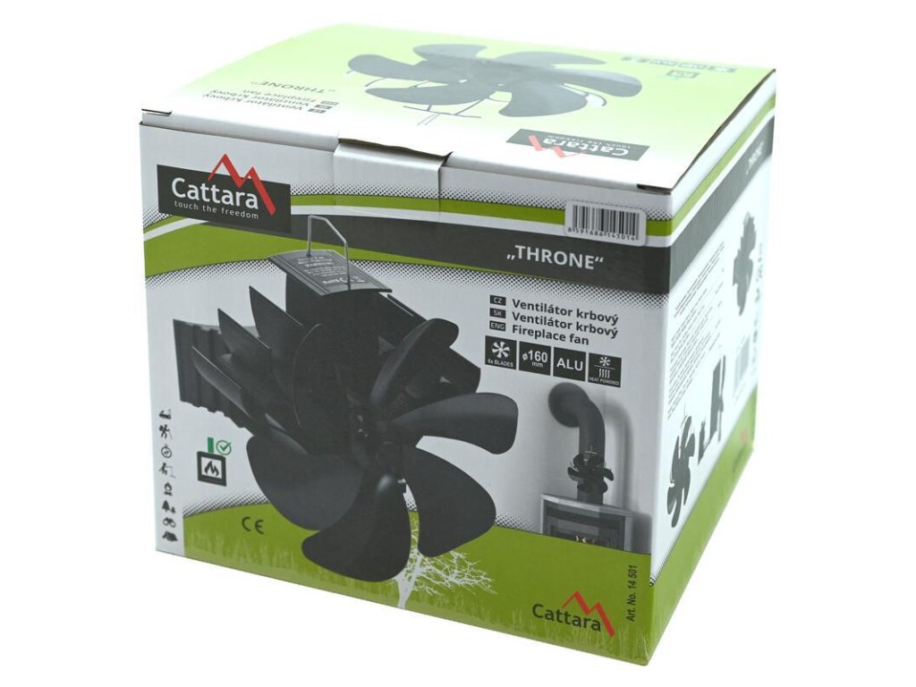 Šestilopatková vrtule se začne plynule rozbíhat přibližně při 80°C a s rostoucí teplotou (optimální rozsah 80–250 °C) se zvýší otáčky i objem proudícího vzduchu. Vrtule o průměru 160 mm dokáže rozhýbat proudění až na úroveň okolo 210 m3/h a svým tichým chodem neruší atmosféru u krbu.